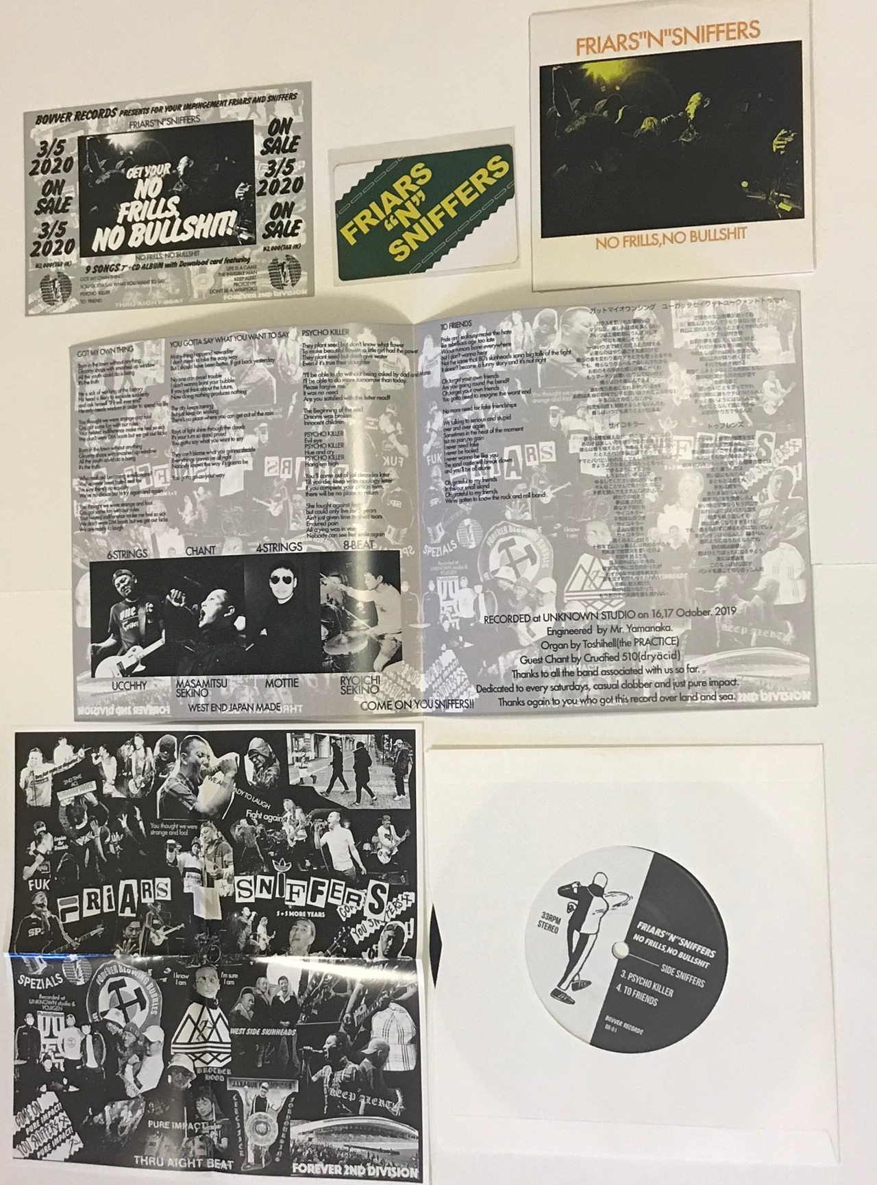 FRIARS"N"SNIFFERS独特の空気で今回の4曲収録アナログ7インチ、5曲収録「Gig ver1曲含む)紙ジャケットCDの合計9曲。